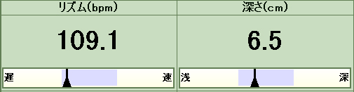 ◆リズム: 1分間あたりの圧迫回数を表示
