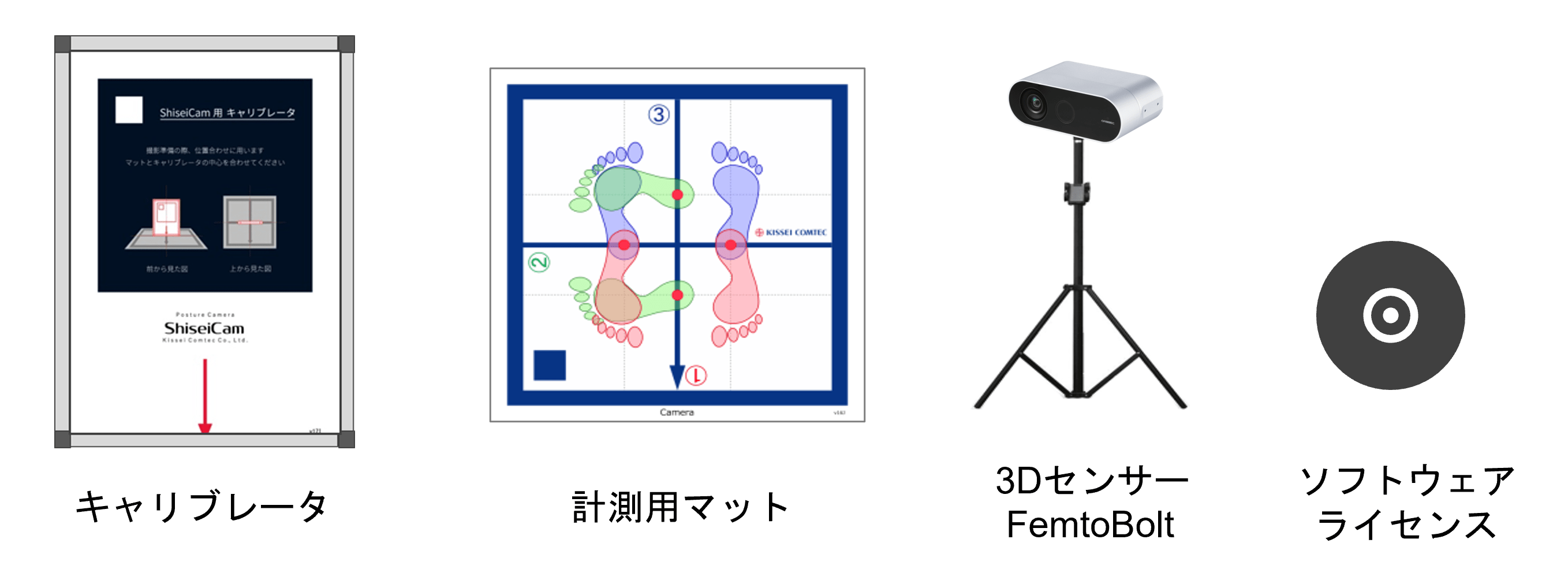 3Dセンサー Femto Bolt、カメラ三脚、カメラケーブル、計測用マット、キャリブレータ、ソフトウェアライセンス