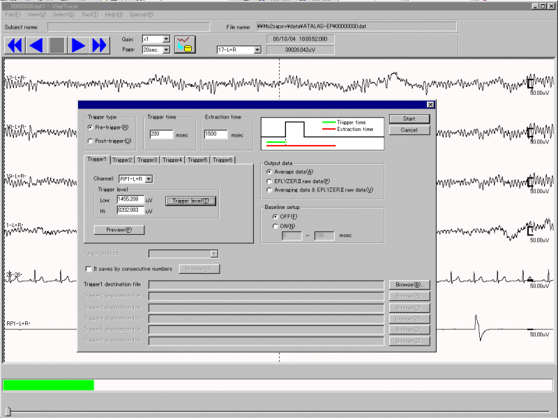 | トリガー抽出 | 指定した範囲の波形データをトリガー抽出し、当社他製品(BIMUTASRII、ATAMAPRII、EPLYZERRII)で解析 |