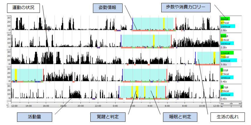 日中の活動を把握 睡眠変数や活動周期を算出