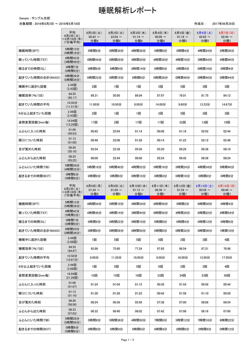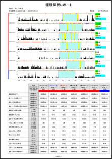 睡眠時間、睡眠潜時などの睡眠変数と計測データをレポートにして出力できます。