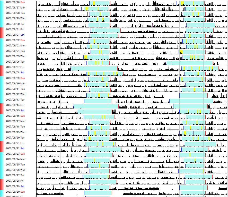 • ペリオドグラムで、行動周期・睡眠周期を解析できます。