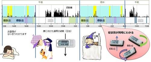活動量計を終日(昼も夜も)腰に装着するだけ。 それだけで“睡眠状況”が確認できます。