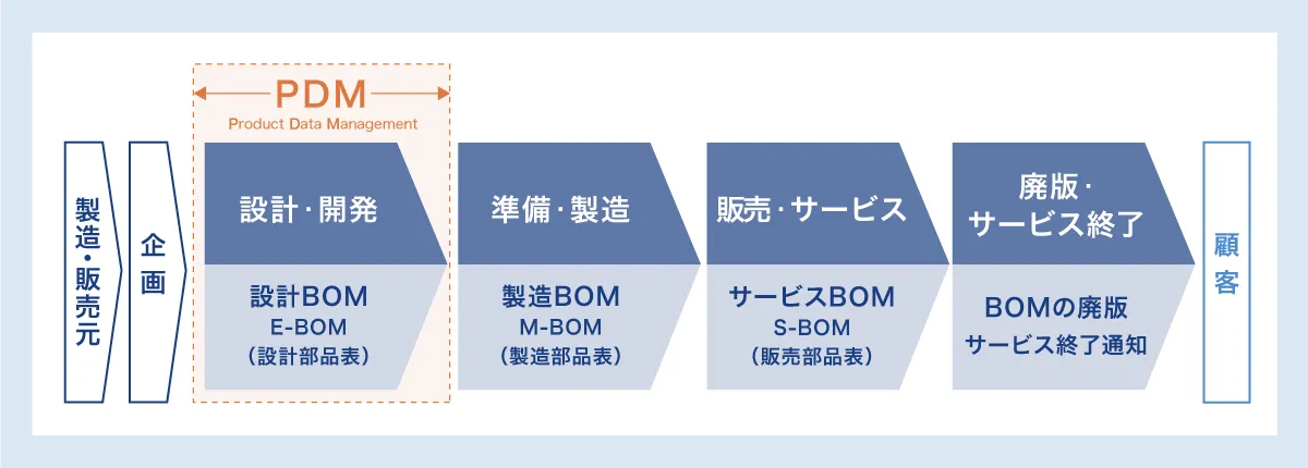PDMは、CADデータやE-BOMなどを一元管理するシステム